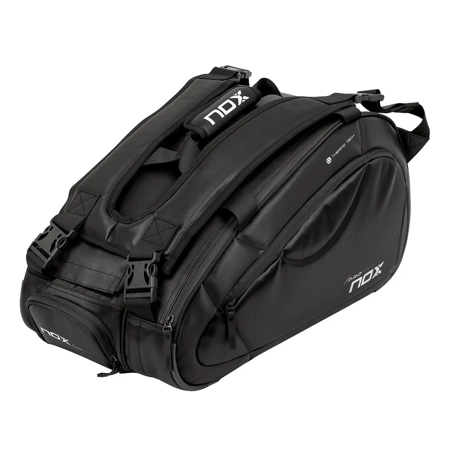 Sac à raquettes Nox Pro Series Noir. Ce sac compact offre un grand espace de rangement pour tous vos besoins. Son design fonctionnel vous permet de transporter facilement vos raquettes, vêtements de sport et accessoires sans sacrifier l’espace. Le compartiment principal spacieux assure une organisation efficace de votre équipement, le gardant protégé et prêt à l’emploi.